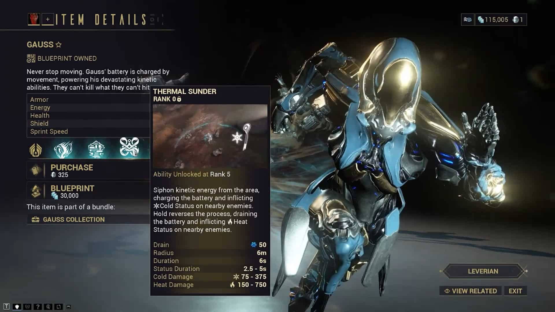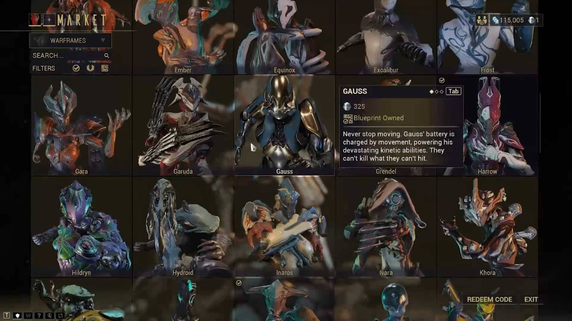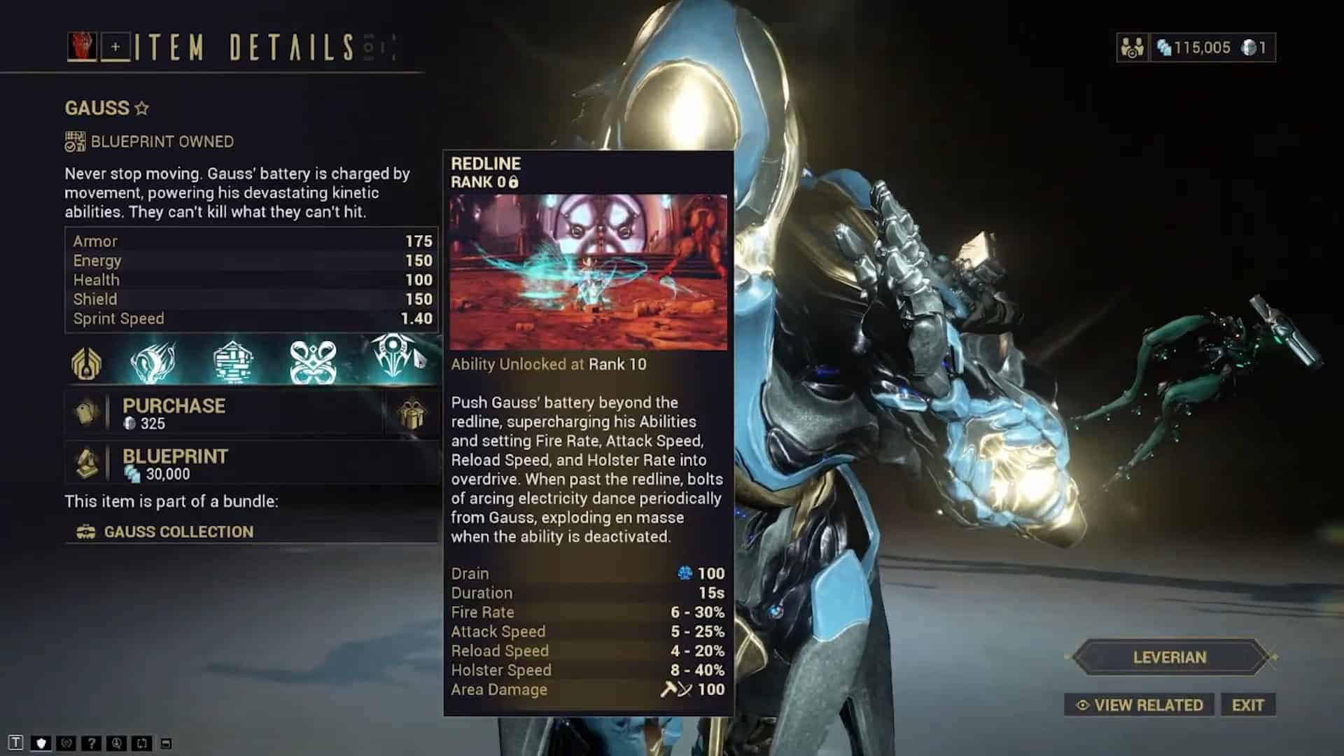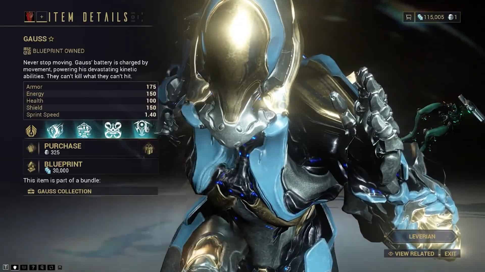 Если вы решите пойти по пути покупки за платину, Гаусса можно приобрести сразу, что избавит вас от утомительного сбора материалов на миссии «Перебой» на Седне.