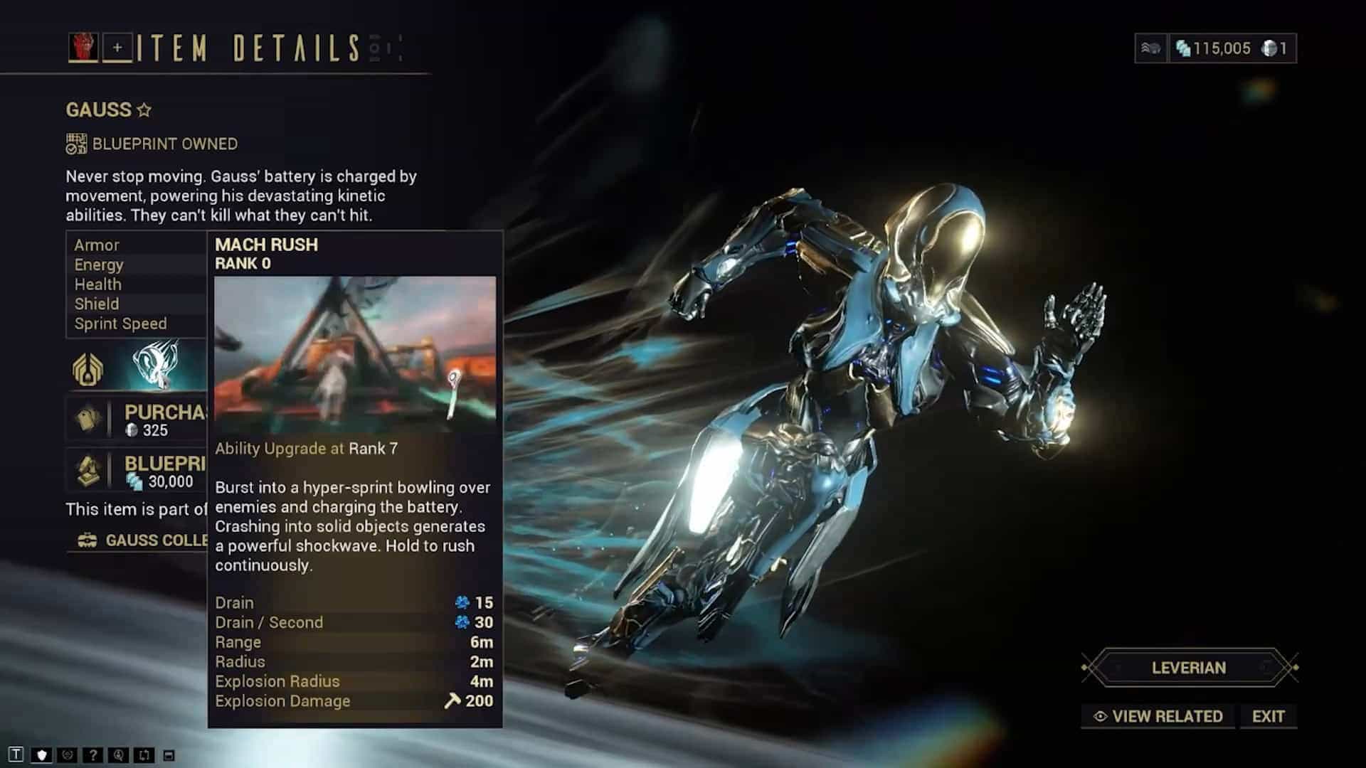 Гаусс — идеальный варфрейм для любителей адреналина. С его молниеносной скоростью и неограниченной разрушительной силой, исходящей от пуль и атак ближнего боя, ни один другой варфрейм не сравнится с ним в плане зрелищности.