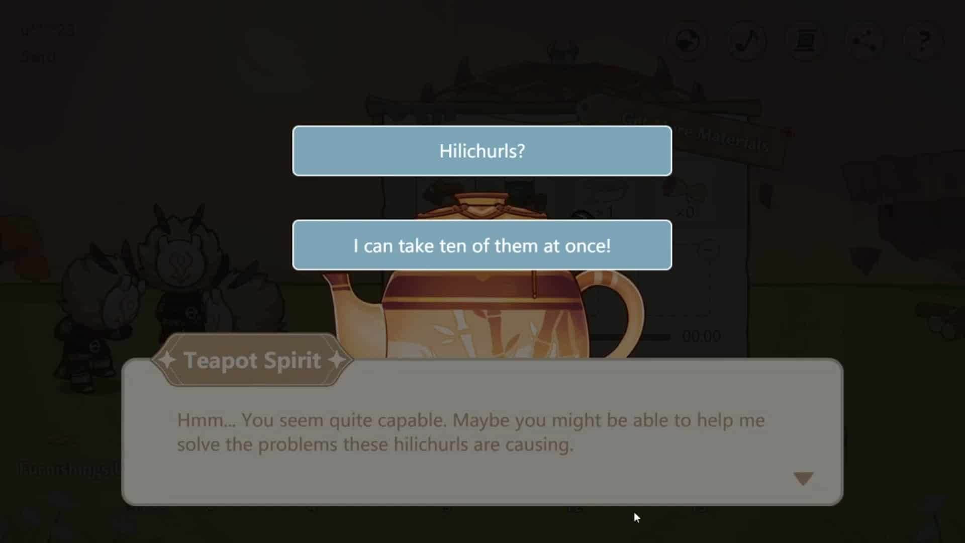 Прежде чем создавать какие-либо предметы, убедитесь, что они соответствуют рецептам рядом с кнопкой «Начать создание». Кроме того, имейте в виду, что у вас может быть не более 5 одинаковых предметов одновременно. Например, у вас может быть не более пяти кроватей хиличурлов. Это правило распространяется на всю мебель, при этом общее количество предметов не должно превышать 15.