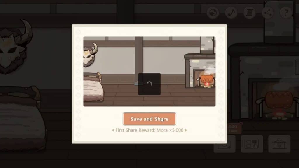 Справа вы увидите три кнопки — нажмите на среднюю, чтобы начать украшать. Когда закончите, сделайте снимок своей работы с помощью левой кнопки, и вы получите 5000 моры в награду за сохранение изображения.