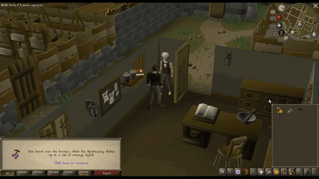 Отправляйтесь на площадь Варрока и сверните на южную тропу. За знаменитой лавкой мечей вы найдёте дом — это и есть Аптекарь. Поговорите с ним и выберите в меню опцию «что-нибудь ещё».